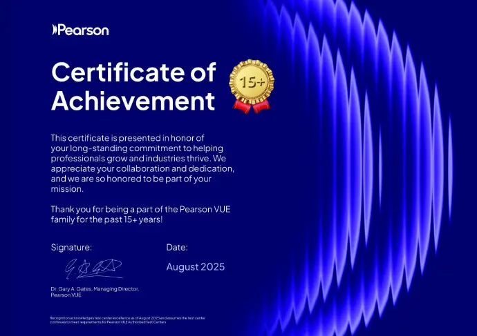 Сертифікатом за більш ніж 15-річну роботу відзначено відділ навчання та сертифікації Центру інформаційних технологій Тернопільського національного технічного університету імені Івана Пулюя (керівник Сергій Марценко), який надано світовим лідером забезпечення проведення тестування компанією Pearson VUE.