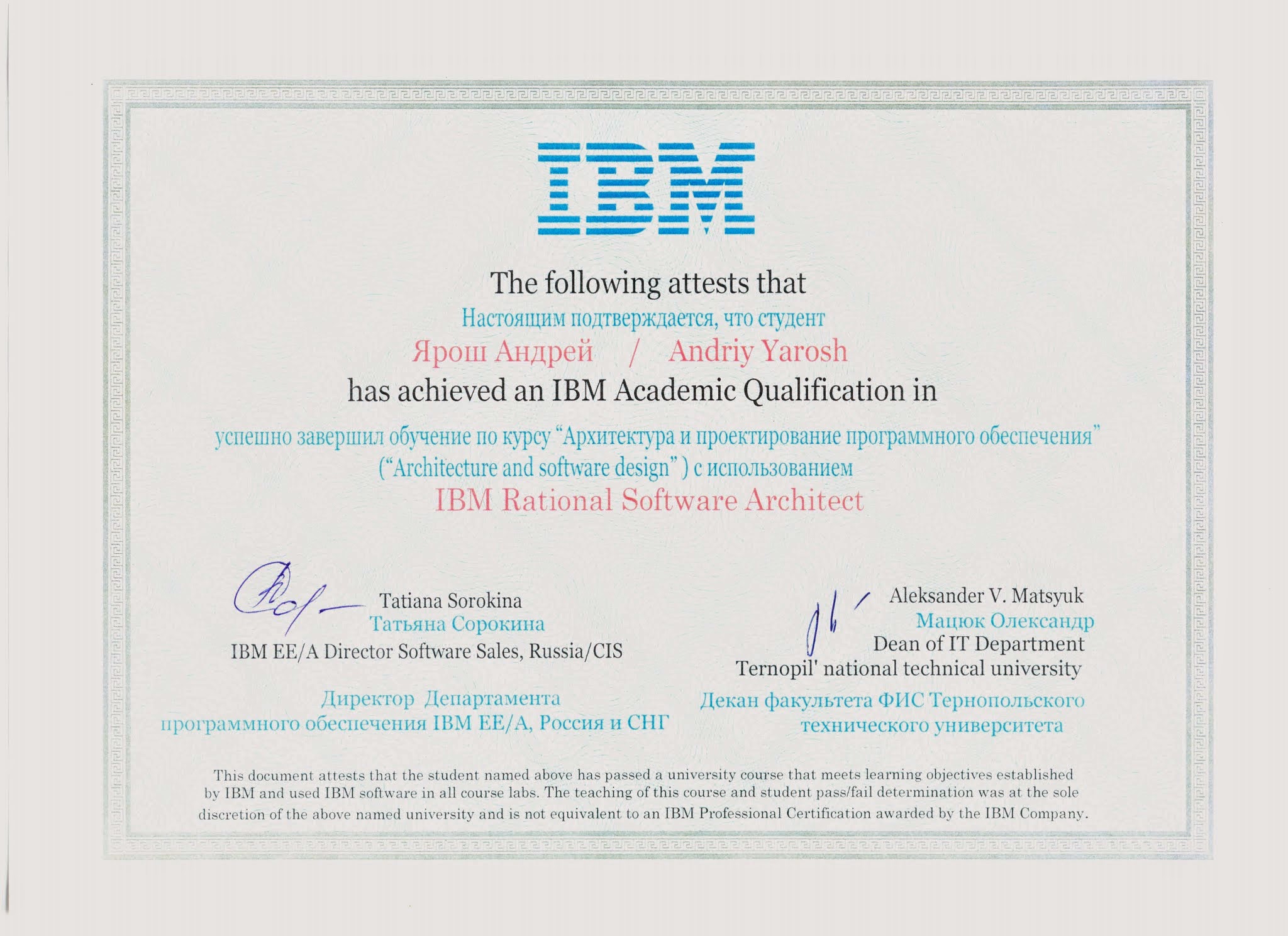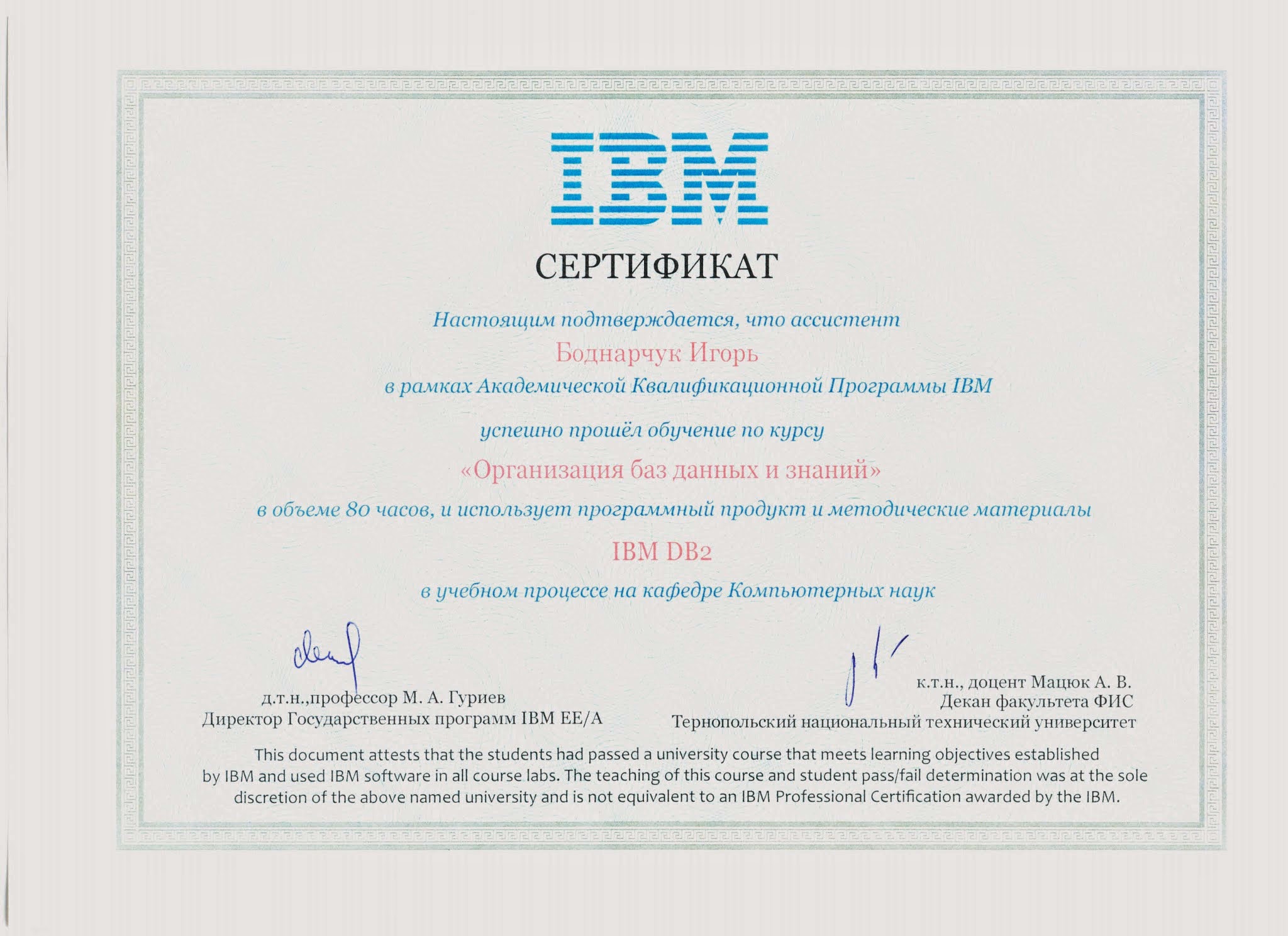 Викладачів та студентів факультету комп'ютерно-інформаційних систем і програмної інженерії, котрі успішно пройшли навчання та отримали сертифікати в межах програми IBM Academic Initiative на базі Центру інформаційних технологій ТНТУ.